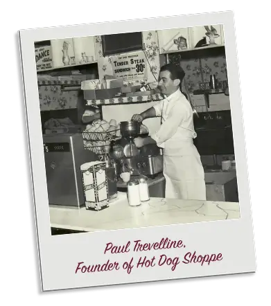 After returning home from WWII, Paul Trevelline opened a small knickknack shop in Warren, Ohio. When sales were slow, he gave hot dogs a shot and they took off. From that one decision came a tradition: hearty chili dogs, crispy fries, and a loyal following that spans generations. What started as a way to save a shop became a beloved local staple. Today, we carry on Paul’s legacy by serving the same great food at an honest price—one dog at a time.